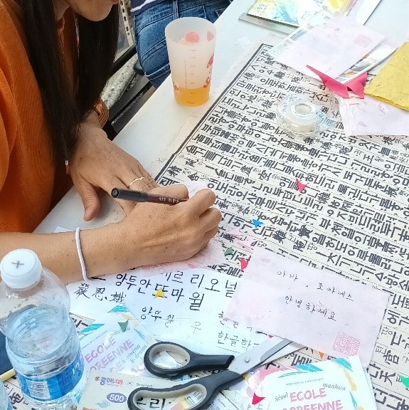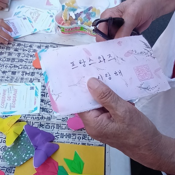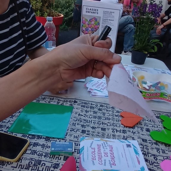 Nous avons participé à une soirée le 10 juin 2022 au centre d'animation Saint Pierre qui est l'un de nos partenaires. Nous y avons partagé un chouette moment avec l'ensemble des associations présentes et de leurs membres.Nous en avons profité pour présenter la Corée et l'AECB au travers de différents objets: caligraphie coréenne, Jongie Jupgi (équivalent coréen de l'origami). Nous tenons à vous remercier toutes et tous pour votre participation et votre bonne humeur. Nous avons hâte de vous retrouver pour de nouveaux échanges.