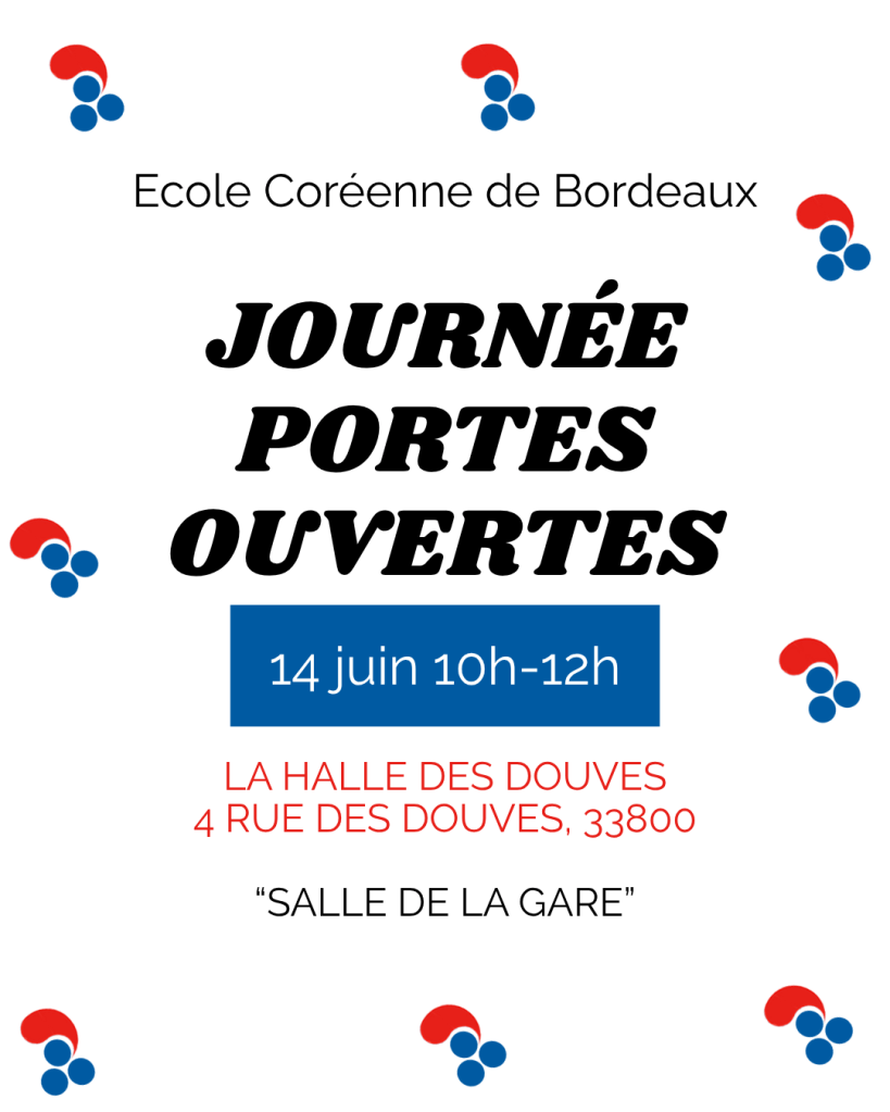 Ce sera l’occasion idéale pour venir rencontrer les enseignants, discuter de votre niveau de coréen, des lieux de cours, ainsi que faire des pre-inscriptions pour l’année 2025-26.